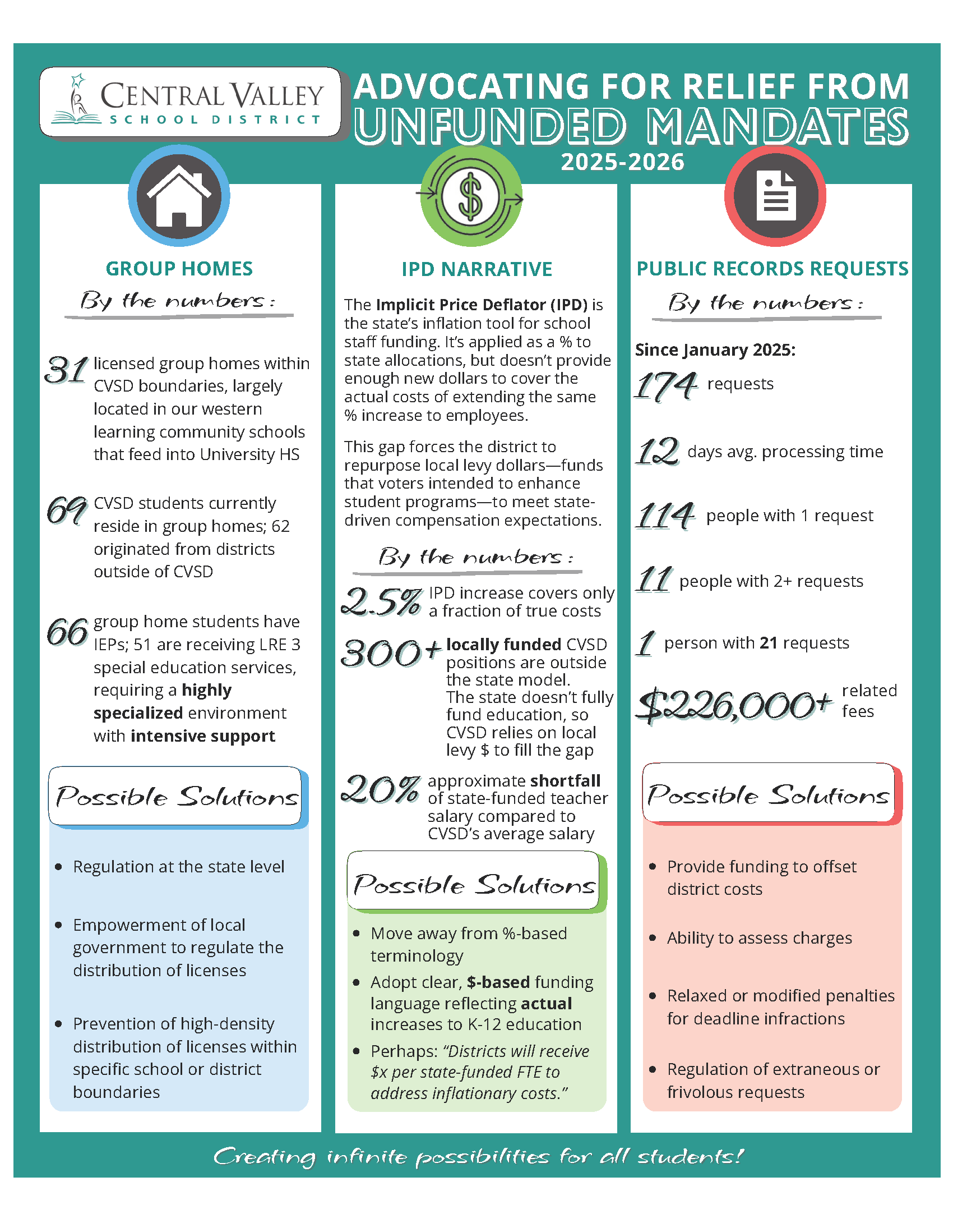 December 2025Since 2018, Washington State has issued roughly 77 new requirements for public education with most of them being unfunded. With the help of district administration, we have compiled the following three areas of concern under the umbrella of unfunded mandates, which we presented to our legislators: